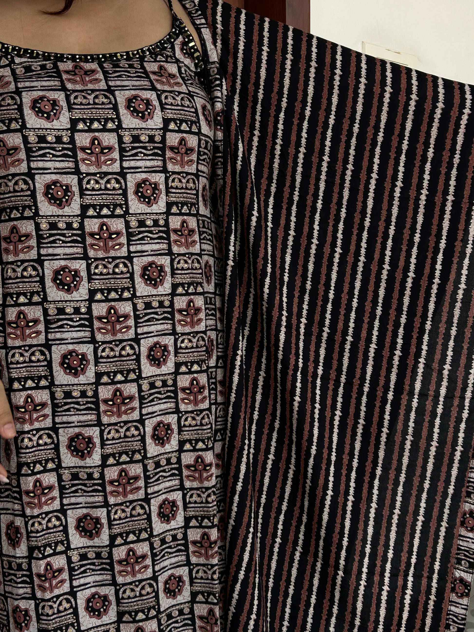 Product: Three-Piece Cotton Suit – Brown & Black 🌿