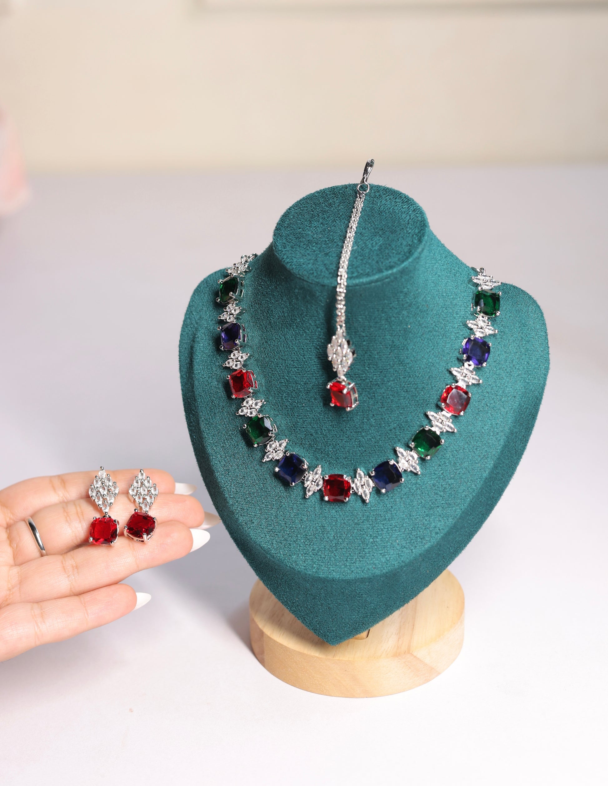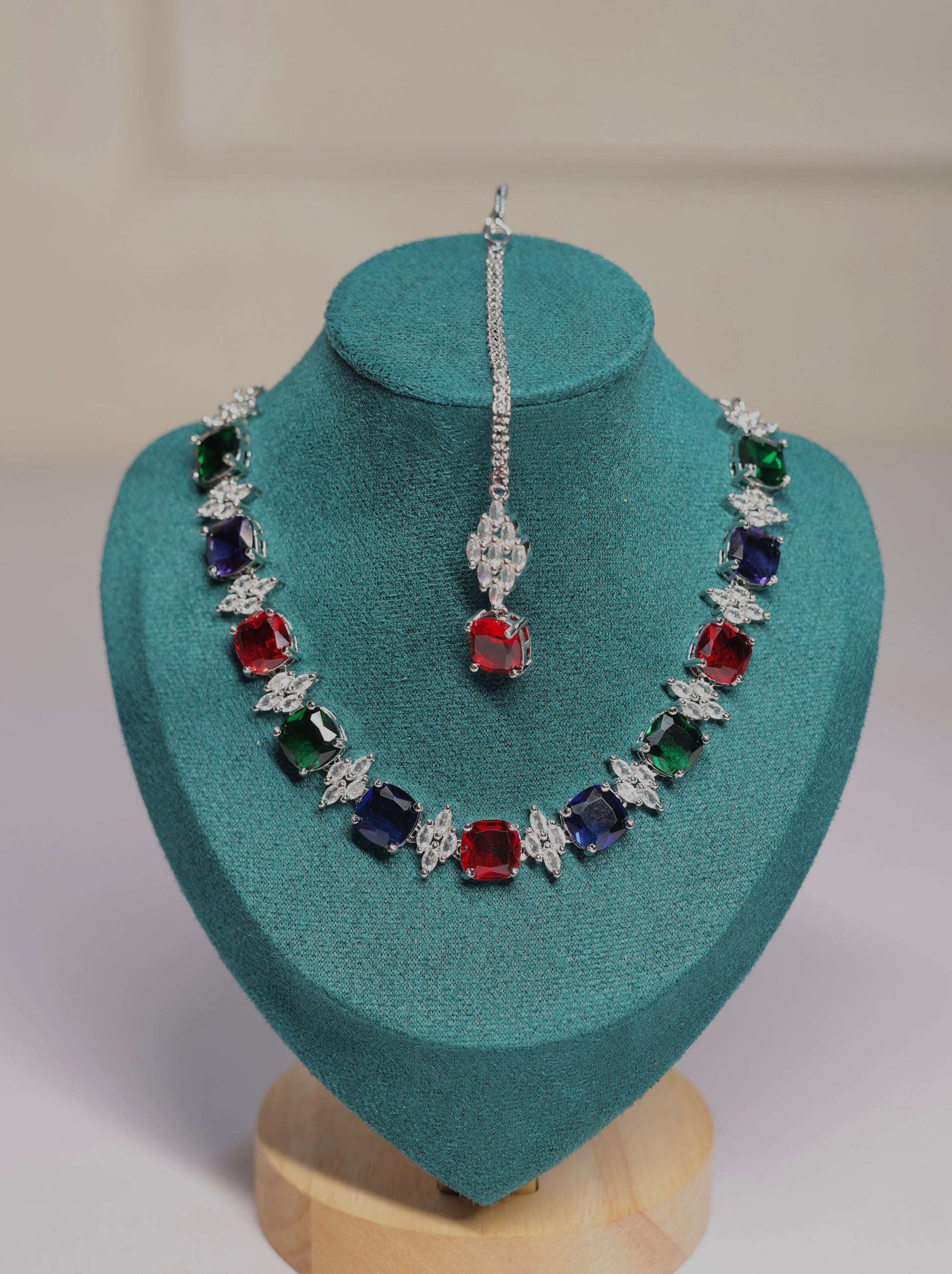 Add a splash of vibrant elegance with our Multi-Color Multi-Volume Necklace Set ππ. Featuring layered strands adorned with sparkling AD stones in a mix of colors and matching earrings, this set brings playful charm and regal sophistication to any outfit. Perfect for weddings, festive occasions, or cocktail parties, itβs a versatile piece that instantly brightens your look.